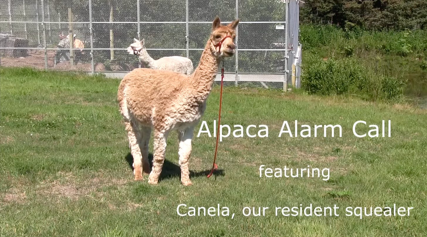 Also sorry another quick detour to satisfy your curiosity on what an alpaca alarm call sounds like, link here. I can promise that it was sufficiently alarming and I literally jumped in my seat even though I knew it was coming.