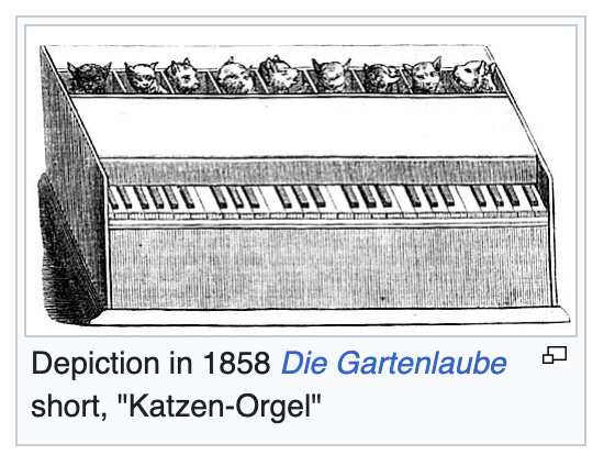 Among the other purported uses of the cat organ was “reducing the melancholy of princes by moving them to laughter,” which has gotta be the most 17th-century medical treatment I’ve ever heard.