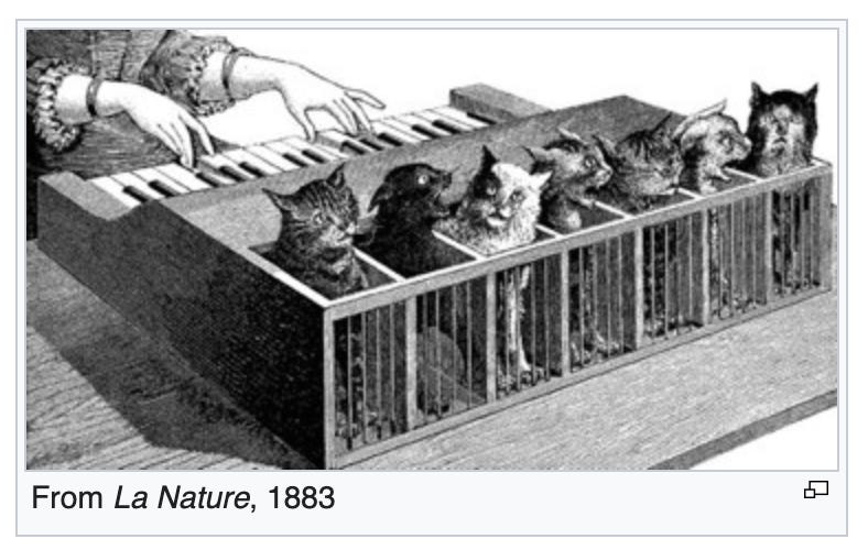 Now, if at this point you find yourself thinking, “Man, I wish there was another imaginary instrument that necessitated animal torture,” you’re gonna love this next part. Introducing the cat organ.