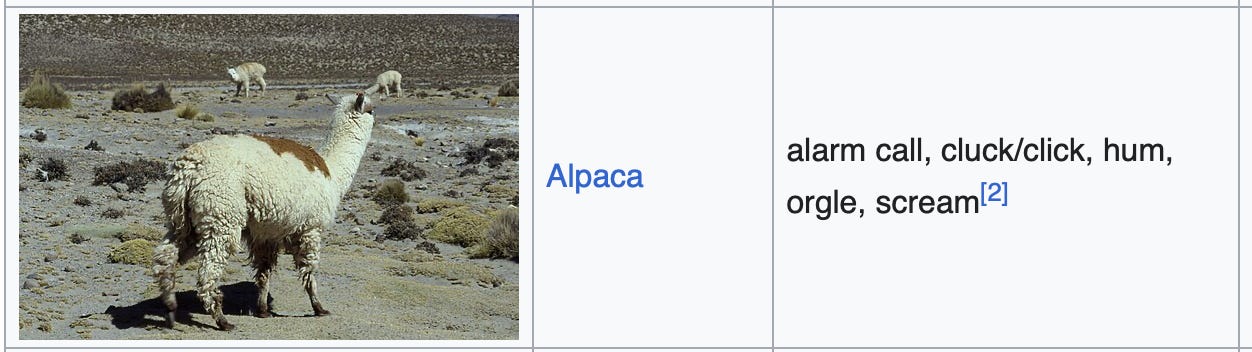 In case you were wondering what an “orgle” sounds like: “His song seems to attract the most ladies out of anybody in our herd. We’re not sure why, but they love his song the best.” (NSFW unless you work on an alpaca farm)