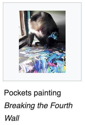 Just to clarify, the Warhol I’m referring to above is Andy Warhol, the human artist, not Pockets Warhol, the monkey artist.