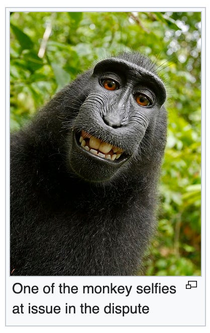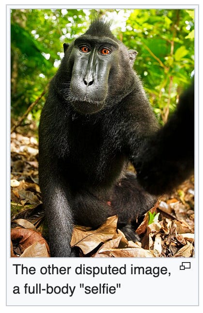 And the copyright to the image remains in the monkey’s possession to this day! Or, I guess, legally speaking, in no one’s possession, but spiritually it belongs to the monkey and it will always belong to the monkey.