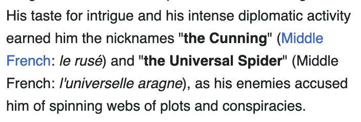 Re: Louis XI’s piganino, if it was actually built, one source reports that “The result is said to have been striking, but not very grateful to human ears.” So there you have it. The proud legacy of Louis XI includes the piganino and this dope nickname: