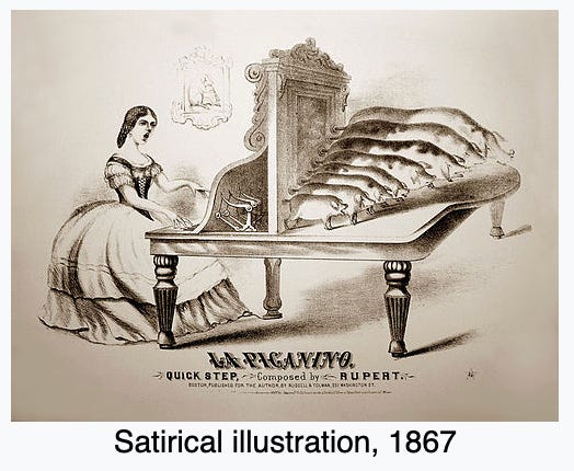 Meet the Piganino. Wikipedia describes this as a “conjectural musical instrument” which is to say it was never actually built but we still have funny drawings of it so we can pretend it did.