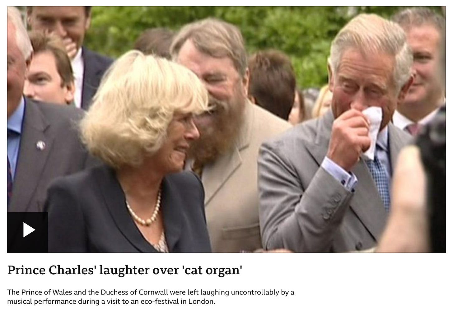 But anyway, this literally happened in 2010 when then-Prince Charles got a huge kick out of a rendition of “Over the Rainbow” played on a cat organ made from squeaky toys. It’s unclear whether Charles had been melancholic prior to the song beginning but he clearly loved this.