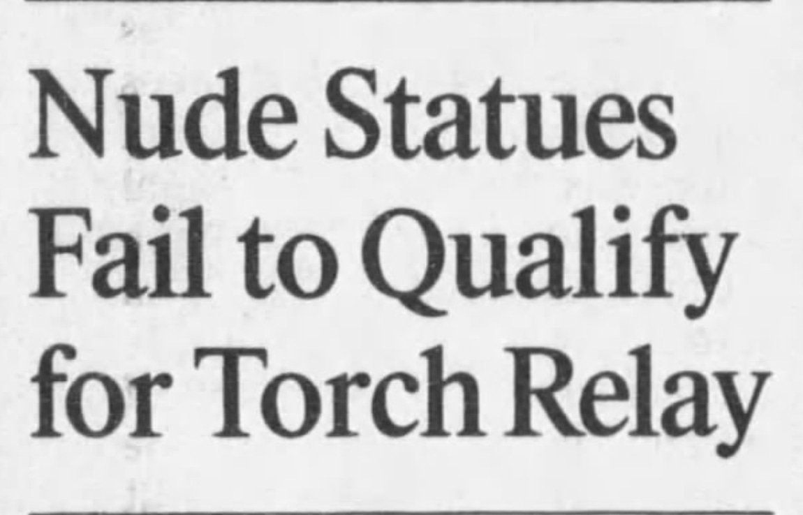 The organizers thought that showing these giant nude pieces of metal on national television would be “an indecent way to start their torch relay” and attempted to have them covered up.