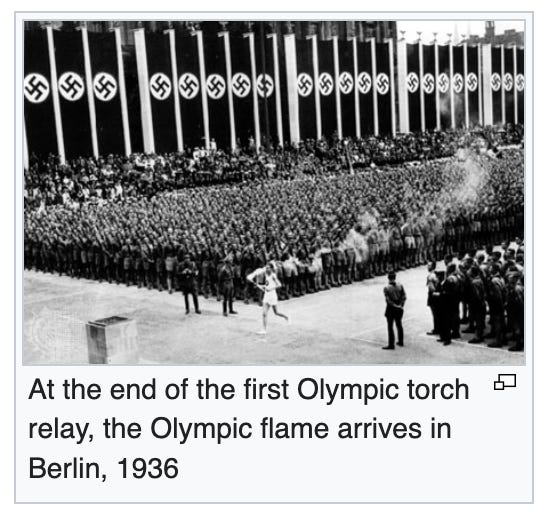 Anyway, should we learn about all the subsequent torch relays that had nothing to do with fascism or antisemitism? Yeah, let’s do that.