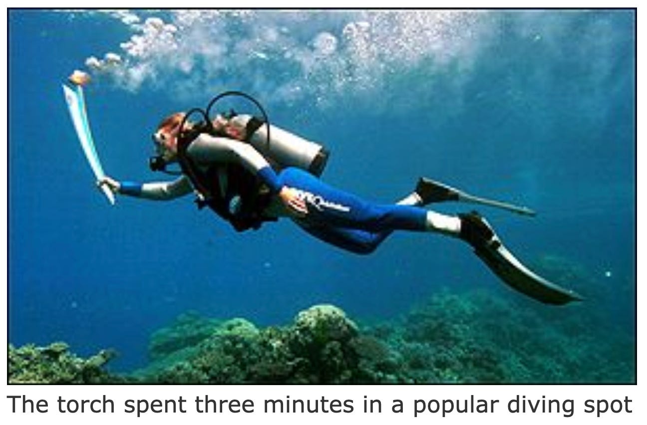 In 2000, the torch went underwater for the first time ever, as a scuba diver carried it across a popular portion of the Great Barrier Reef.